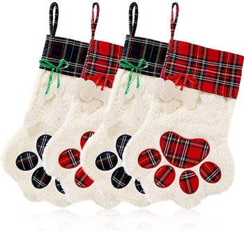 Medias personalizadas para mascotas, gatos, perros, tartán grande, pata colgante, decoraciones de Navidad, medias